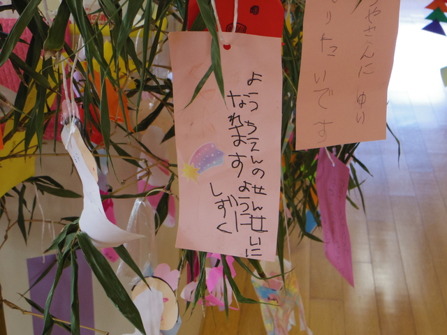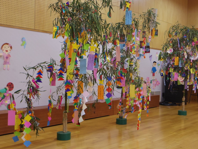 七夕飾りを作ったり、短冊に願い事を書いて