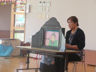 民話チームかでな(紙芝居グループ)の方々が読み聞かせに来てくれました。