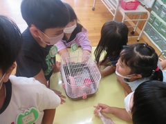 大事に育ててくれた赤ちゃんハムスター5匹を園に連れてきてくれました(^^)